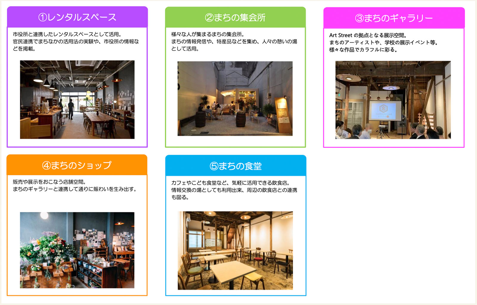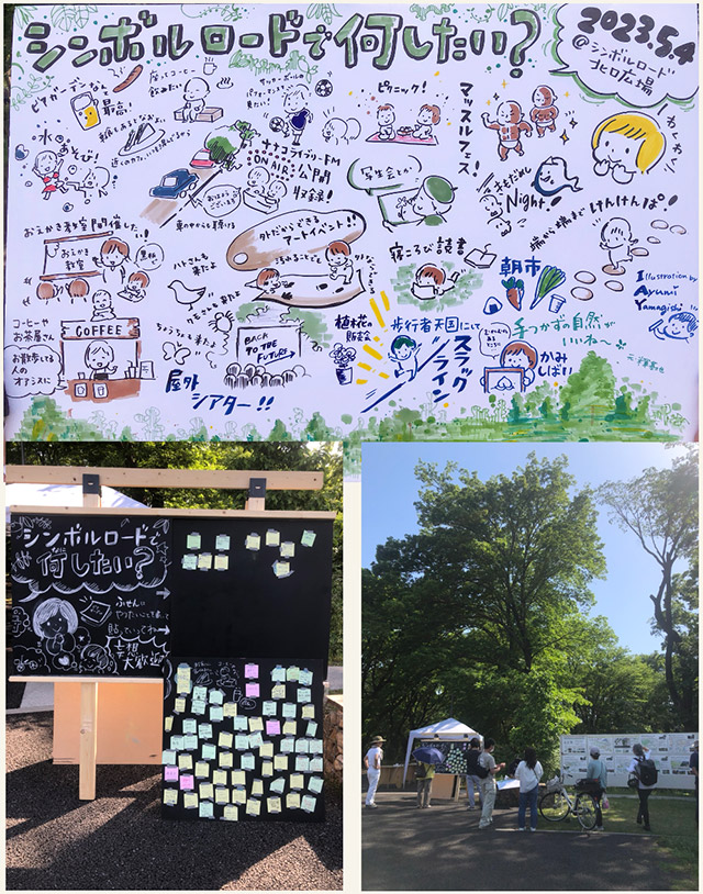 あさか市民に向けた、あさかにある公共空間や遊休不動産、その他利活用可能な場所や空間をどのようにしたら使えるのか、事例とともに紹介する。使いみちの意見をもらうアンケートの実施、シンボルロードの管理運営を考える会などで意見交換しながら作成中。